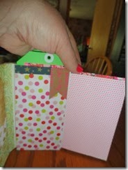 That's a lot of places for photos and keepsakes! I had the Cadette Girls at a recent Book Artist badge program make these and they used their favorite box of cookies. I hadn't decorated mine so they would have a clean slate and decorate theirs as they desired. Added a twill ribbon to both sides to tie it shut!